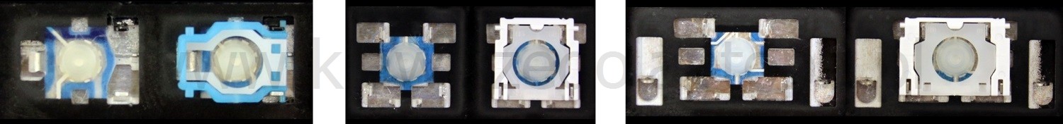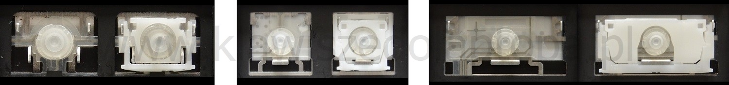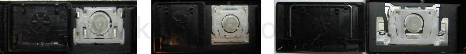 - Bei den meisten Tastaturen, die von außen identisch aussehen, wurden unterschiedliche Arten von Scharnieren unter den Tasten verwendet.