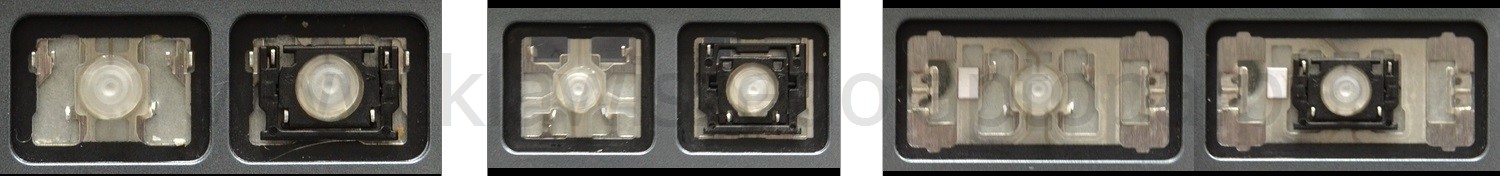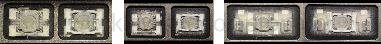 - Bei den meisten Tastaturen, die von außen identisch aussehen, wurden unterschiedliche Arten von Scharnieren unter den Tasten verwendet.