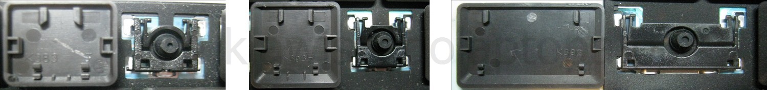 - Bei den meisten Tastaturen, die von außen identisch aussehen, wurden unterschiedliche Arten von Scharnieren unter den Tasten verwendet.