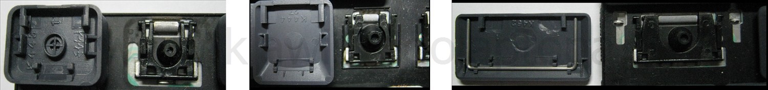 - Bei den meisten Tastaturen, die von außen identisch aussehen, wurden unterschiedliche Arten von Scharnieren unter den Tasten verwendet.