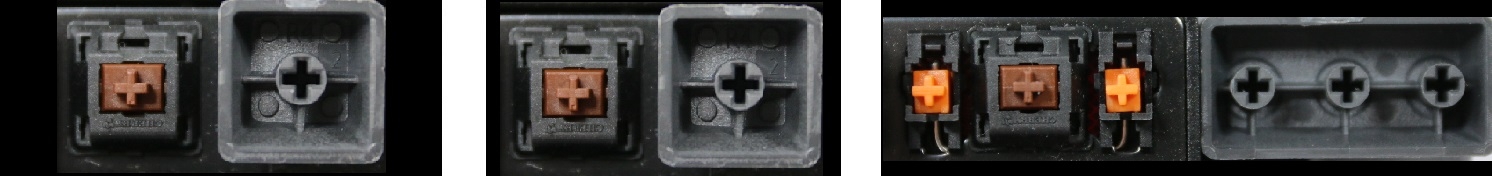 - Bei den meisten Tastaturen, die von außen identisch aussehen, wurden unterschiedliche Arten von Scharnieren unter den Tasten verwendet.